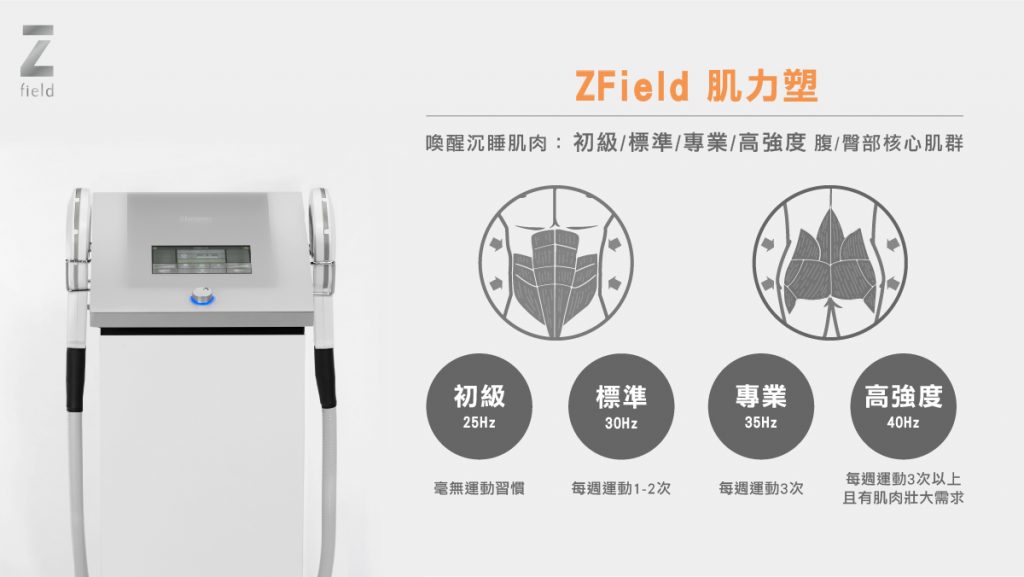 Zfield肌力塑透過電磁科技,精準針對想訓練的肌群部位進行鍛鍊,喚醒深層肌肉,30分鐘就能讓肌肉極限收縮最高達36,000次,輕鬆躺著就能雕塑身體曲線特定肌群,且能依個人狀態以及期望調整不同的強度。